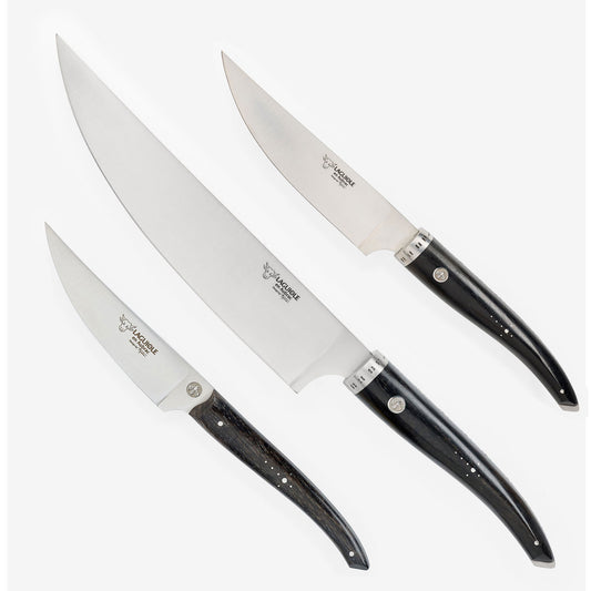 Laguiole en Aubrac طقم سكاكين مطبخ مصنوع يدويًا من 3 قطع بمقبض من خشب الأبنوس