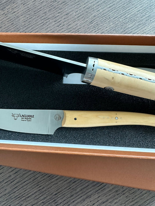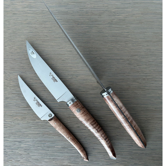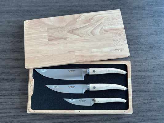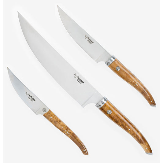 Laguiole en Aubrac طقم سكاكين مطبخ احترافي من الفولاذ المقاوم للصدأ بالكامل مكون من 3 قطع مع مقابض العرعر