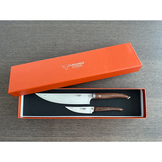 مجموعة سكاكين مطبخ مصنوعة يدويًا من Laguiole en Aubrac مع مقابض من خشب الساج