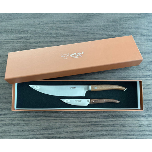 Laguiole en Aubrac طقم سكاكين مطبخ مصنوع يدويًا من 3 قطع بمقبض من خشب الزيتون