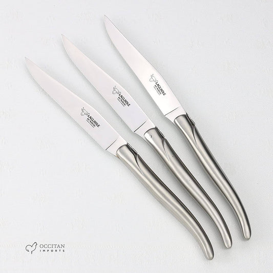 طقم سكاكين ستيك من 6 قطع مصنوع يدويًا من Laguiole en Aubrac مع مقابض من الفولاذ المقاوم للصدأ غير اللامع