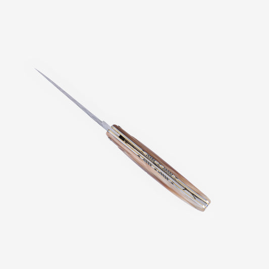 Laguiole en Aubrac Handcrafted Multilayer Damascus Double Plates Multipurpose Knife with Bone Handle, 4.75-Inches