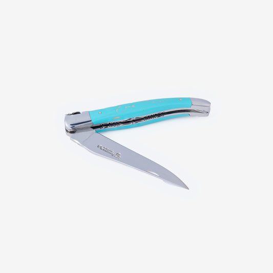 Laguiole en Aubrac Handcrafted Luxury Double Plated Multipurpose Knife with Turquoise Handle, 4.75-inches