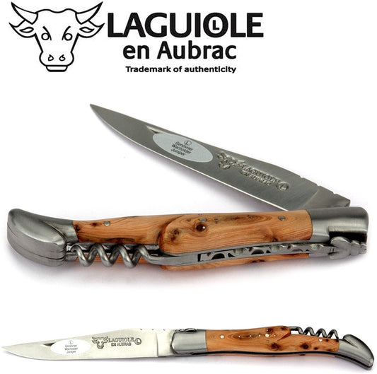 Laguiole en Aubrac Handcrafted Multipurpose Knife with Corkscrew, Juniper Handle, 4.75 inches