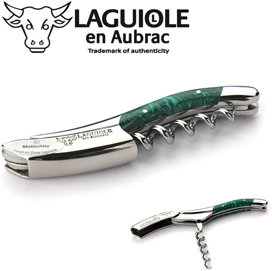 Handcrafted Sommelier Waiter's Corkscrew with Genuine Malachite Handle by Laguiole en Aubrac