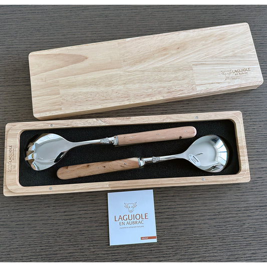 Laguiole en Aubrac 2-Piece Salad Server Set With 2-Spoons, Birchwood Handle