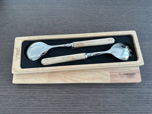 Laguiole en Aubrac 2-Piece Salad Server Set With 2-Spoons, Juniper Wood Handle
