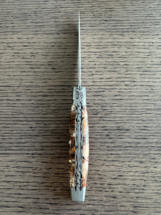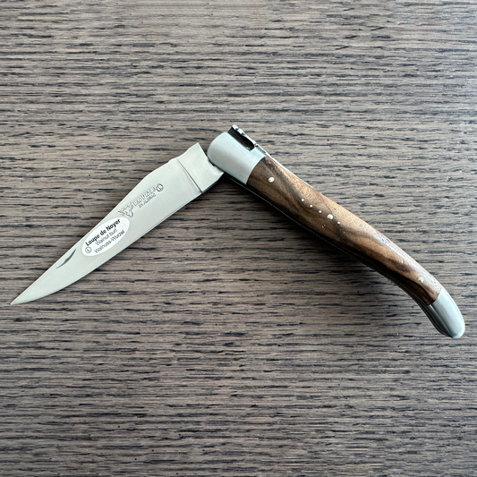 Laguiole en Aubrac Luxury Spring And Handcarved Plates Multipurpose Knife, With Walnut Burl Wood Handle, 4.75- Inches