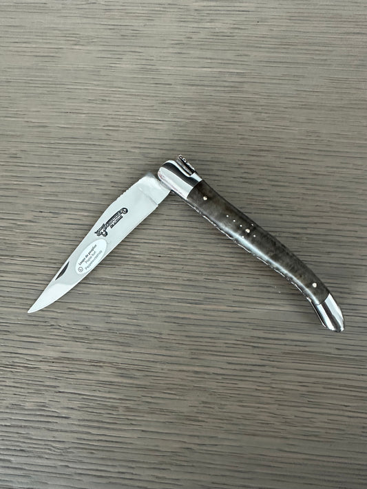Laguiole en Aubrac Handcrafted Luxury Double Plates Multipurpose Knife With Blackened Poplar Burl Handle, 4.75-Inches