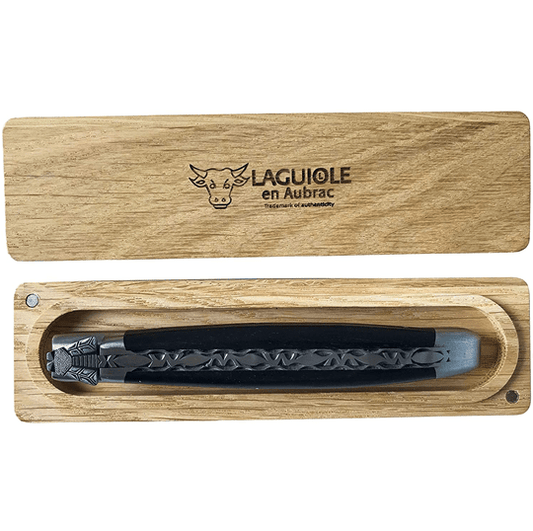 Laguiole en Aubrac Luxury Handcarved Plates Multipurpose Knife with Ebony Handle, 4.75 inches