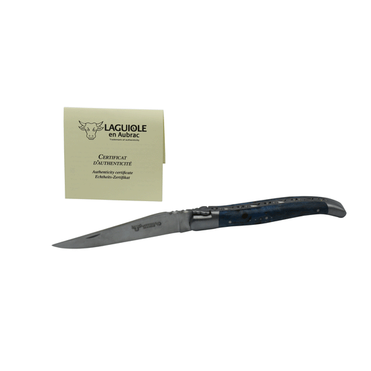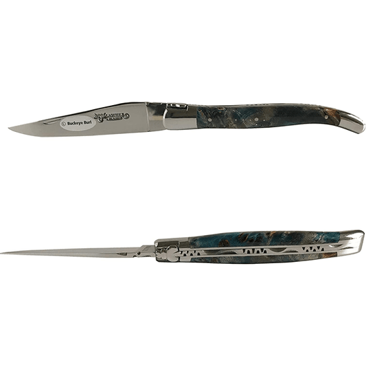 Laguiole en Aubrac Handcrafted Plates Multipurpose Knife, Blue Poplar Burl Wood Handle, 4.75 inches
