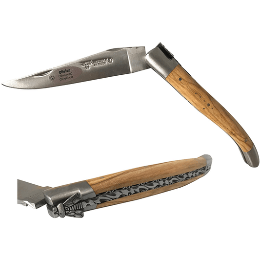 Laguiole en Aubrac Luxury Handcarved Plates Multipurpose Knife with Olivewood Handle, 4.75 inches