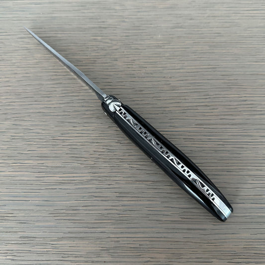 Laguiole en Aubrac Handcrafted Plated Multipurpose Knife with Shiny Bolsters, Solid Horn Handle, 4.33 inches