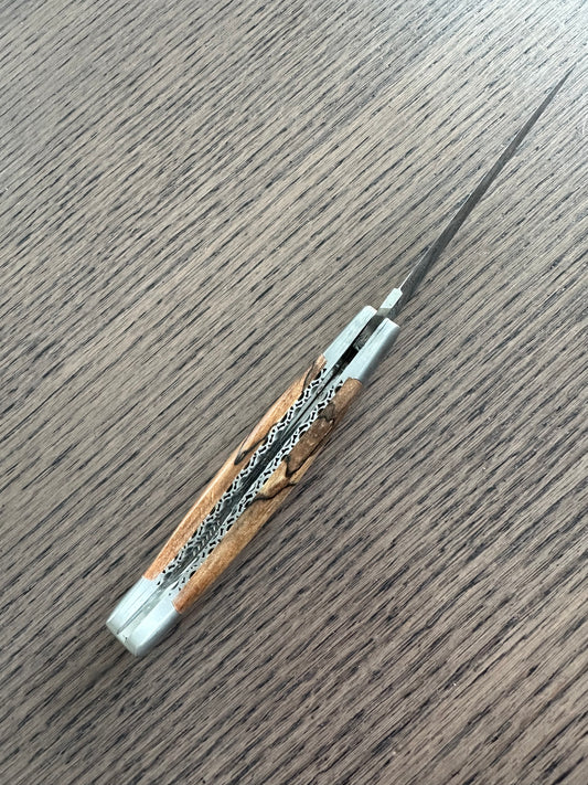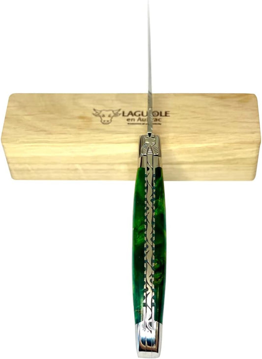 Laguiole en Aubrac Handcrafted Handcarved Spring Multipurpose Knife with Green Poplar Burl, 4.75-Inches