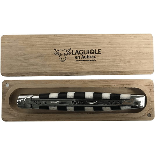 Laguiole en Aubrac Handcrafted Plates Multipurpose Knife, Ebony & Bone Checkerboard Handle Handle, 4.75 inches