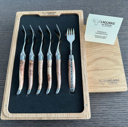 Laguiole en Aubrac Handcrafted 6-Piece Dessert Fork Set with Juniper Wood Handles