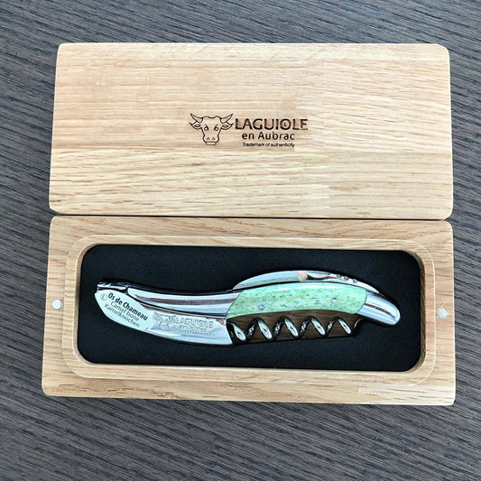 Handcrafted Sommelier Waiter's Corkscrew with Green Camel Bone Handle by Laguiole en Aubrac