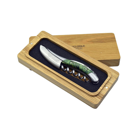 Handcrafted Sommelier Waiter's Corkscrew with Stabilized Green Poplar Burl Handle, Brushed Bolster by Laguiole en Aubrac