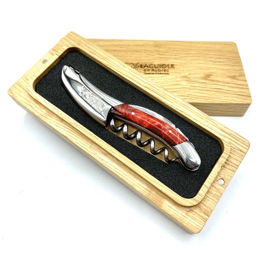 Handcrafted Sommelier Waiter's Corkscrew with Stabilized Red Poplar Burl Handle, Polished Bolster by Laguiole en Aubrac