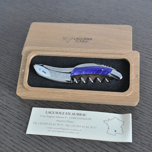 Handcrafted Sommelier Waiter's Corkscrew with Juma Blue Handle by Laguiole en Aubrac
