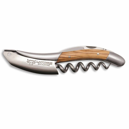 Laguiole en Aubrac 2-Piece Sommelier Waiter's Corkscrew and Handcrafted Plate Multipurpose Knife with Olivewood Handle Set