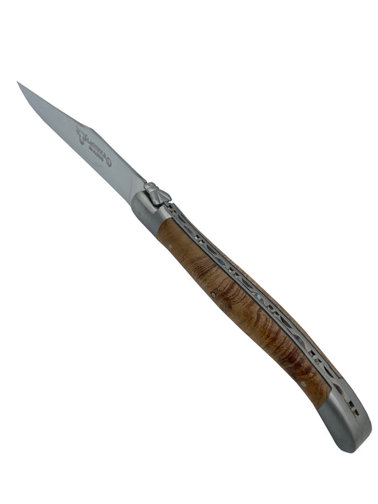 Laguiole en Aubrac Handcrafted 4-Piece Steak Knife Set with Wavy Natural Maple Wood Handles