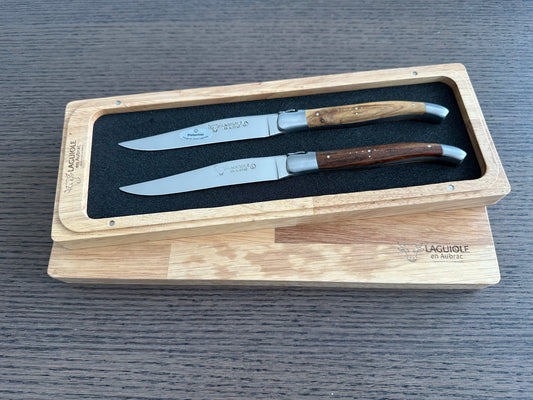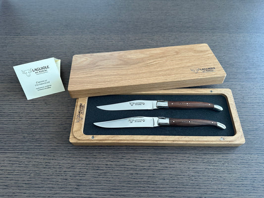 Laguiole en Aubrac Handcrafted 2-Piece Steak Knife Set with Aubrac Wood Handles
