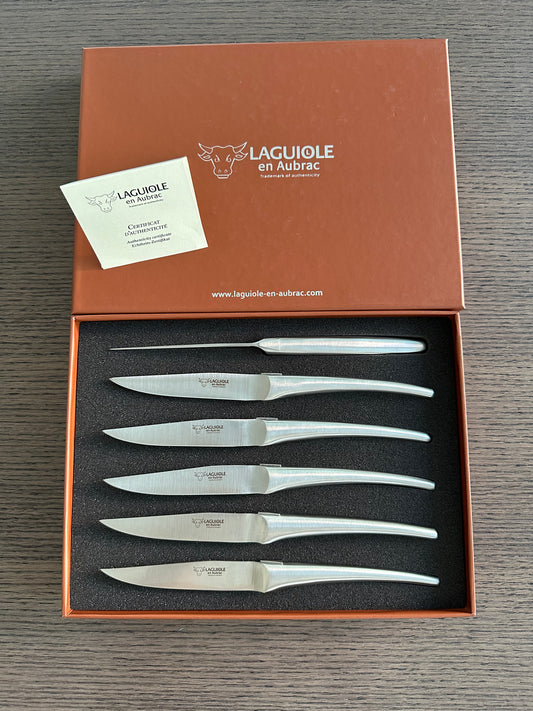 Laguiole en Aubrac Handcrafted 6-Piece Steak Knife Set with Matte Stainless Steel Handles