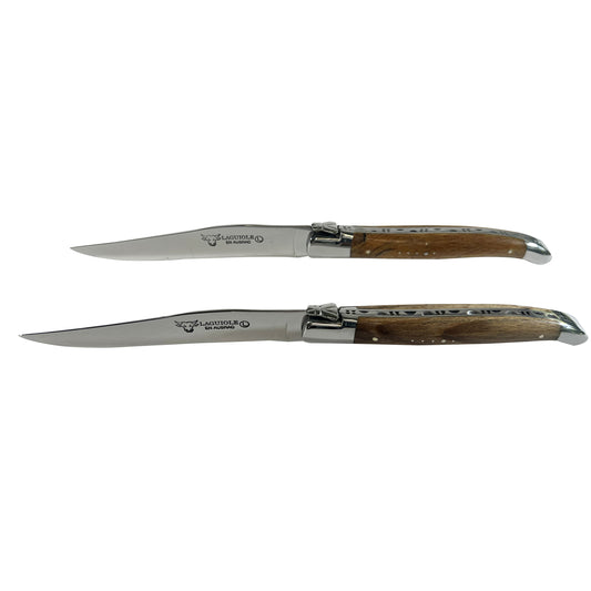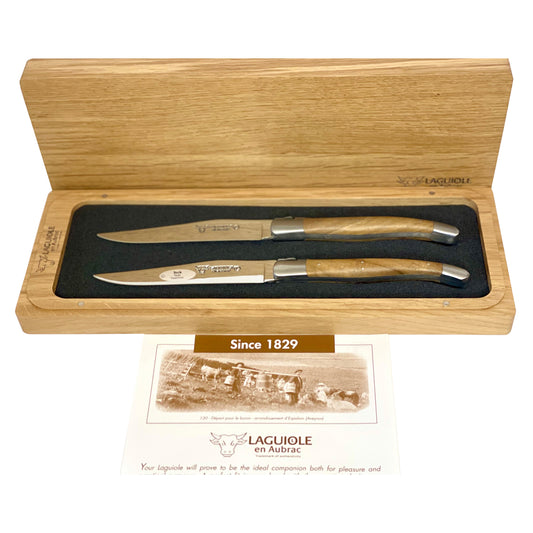 Laguiole en Aubrac Handcrafted 2-Piece Steak Knife Set with Olivewood Handles