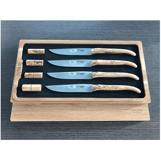 Laguiole en Aubrac Steak House Handcrafted 4-Piece Steak Knife Set with Olivewood Handles