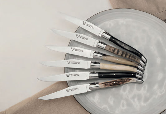 Laguiole en Aubrac Juego de cuchillos para bistec de 6 piezas chapados a mano con mangos de cuerno macizo