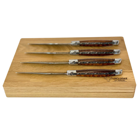 Laguiole en Aubrac Juego de cuchillos para bistec de 4 piezas chapados a mano con mango de madera de serpiente Amourette