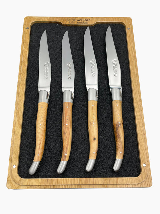 Laguiole en Aubrac Juego de cuchillos de carne chapados a mano de 4 piezas con mangos de madera de enebro