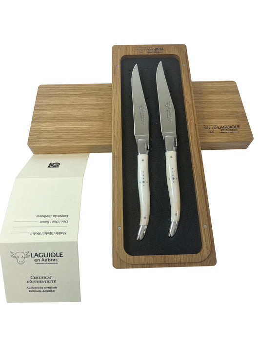 Laguiole en Aubrac Juego de cuchillos para bistec de 2 piezas chapados a mano con mangos de madera de teca