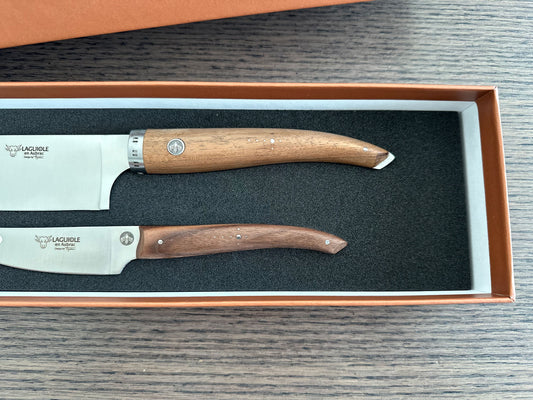 Laguiole en Aubrac Juego de cuchillos de cocina premium de 3 piezas de acero inoxidable totalmente forjado profesional con mangos de enebro