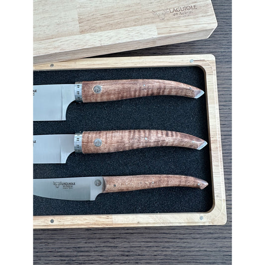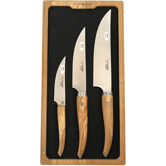 Laguiole en Aubrac Juego de cuchillos de cocina artesanales de 3 piezas con mango de olivo