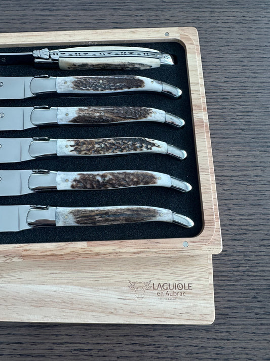 Laguiole en Aubrac Handcrafted 6-Piece Steak Knife Set with Deer Antler Handles