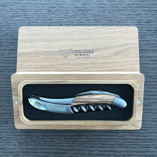 Sacacorchos de camarero Laguiole en Aubrac Sommelier con mango de madera de olivo