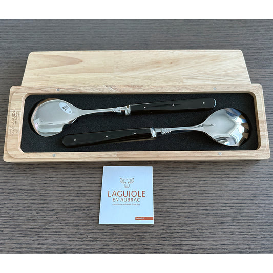 Laguiole en Aubrac 2-Piece Salad Server Set With 2-Spoons, Buffalo Horn Handle