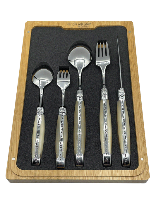 Laguiole en Aubrac高級5ピース手作り食器セット、ソリッドホーンハンドル