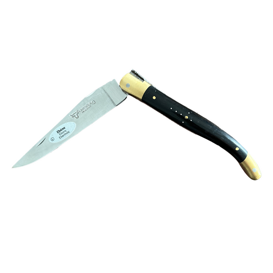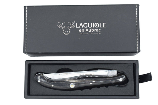 Laguiole en Aubrac Le Bijou Luxury Multipurpose Knife, 4.8-in (12cm), Ebony Wood Handle, With Brass Bolsters, And Two Copper Plates
