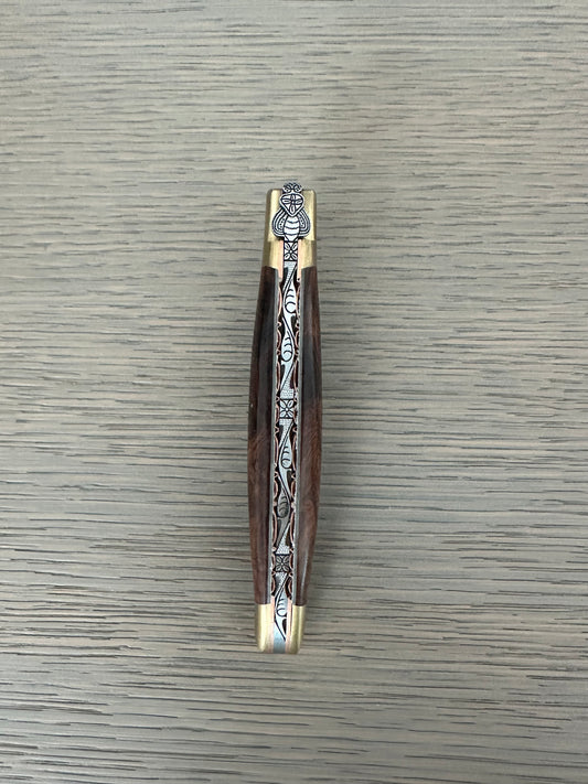 Laguiole en Aubrac Le Bijou Luxury Multipurpose Knife, 4.8-in (12cm), Ironwood Burl Handle, With Brass Bolsters, And Two Copper Plates
