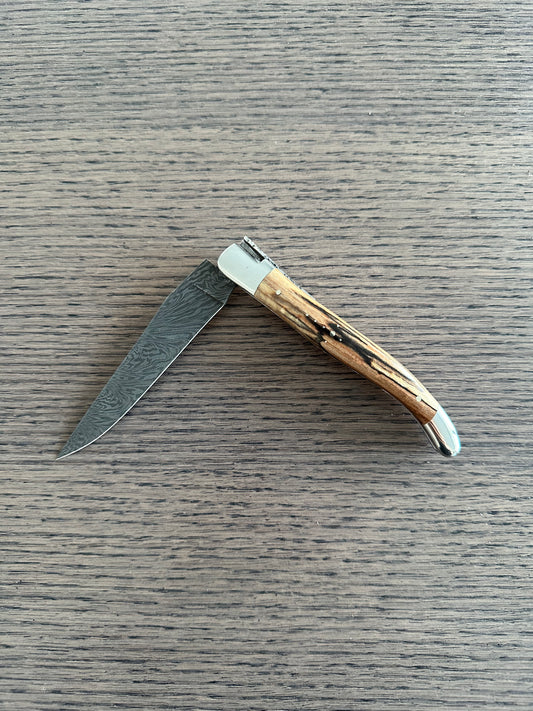 Laguiole en Aubrac Le Bijou Luxury Multipurpose Knife, 4.8-in (12cm), Warthog Tusk Handle, With Brass Bolsters, And Two Copper Plates