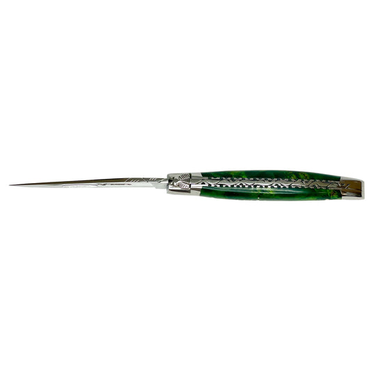 Laguiole en Aubrac手作り限定版メッキ多目的ナイフ、バールオリーブウッドハンドル、4.75インチ