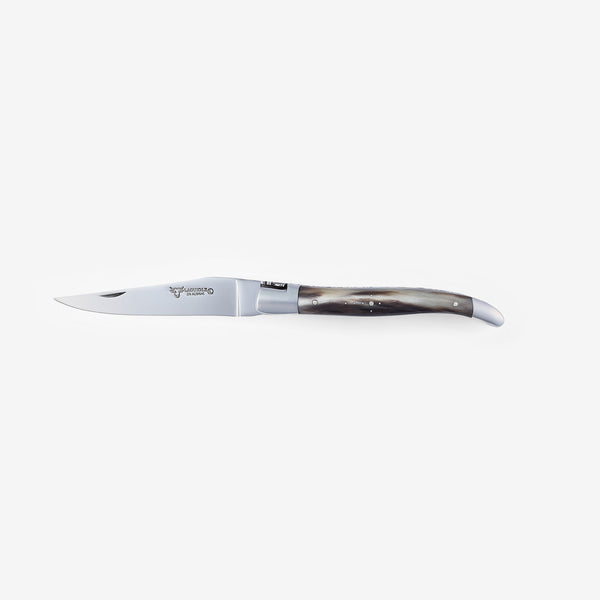 Laguiole en Aubrac手作りのダブルブラス&ステンレスプレート多目的ナイフ、ソリッドホーンハンドル、4.75インチ