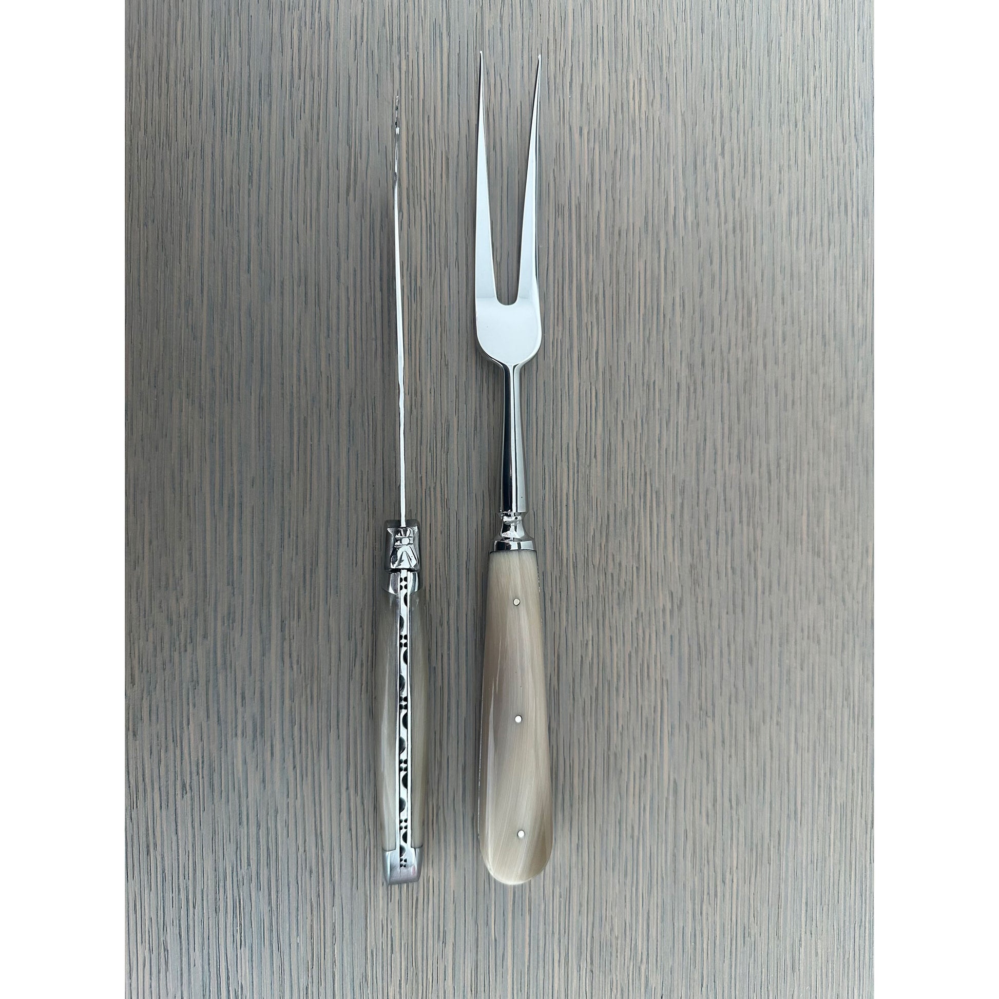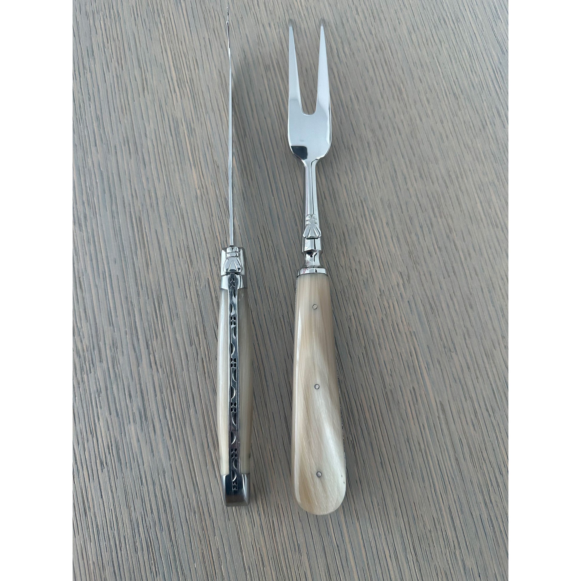 Laguiole en Aubrac Handcrafted 2-Piece Cheese Knife Set with Solid Horn Handles