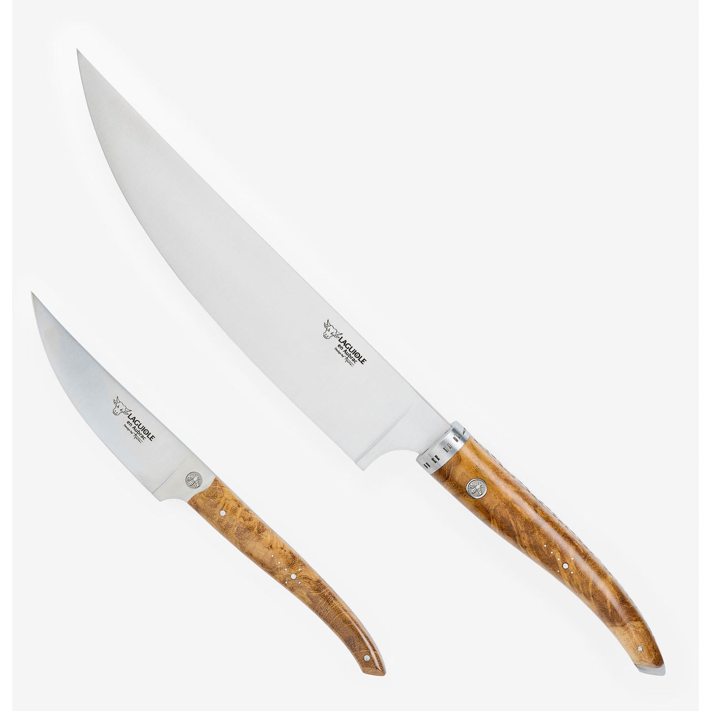 Laguiole en Aubrac Handcrafted Gourmet Cuisine 2-Piece Kitchen Knife Set with Teak Wood Handles