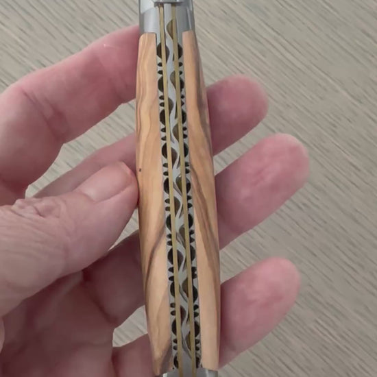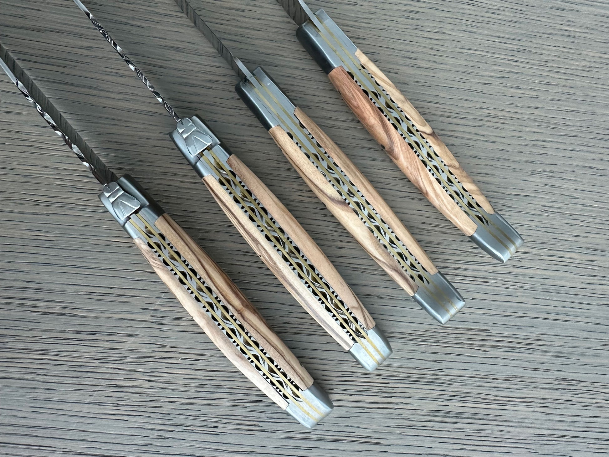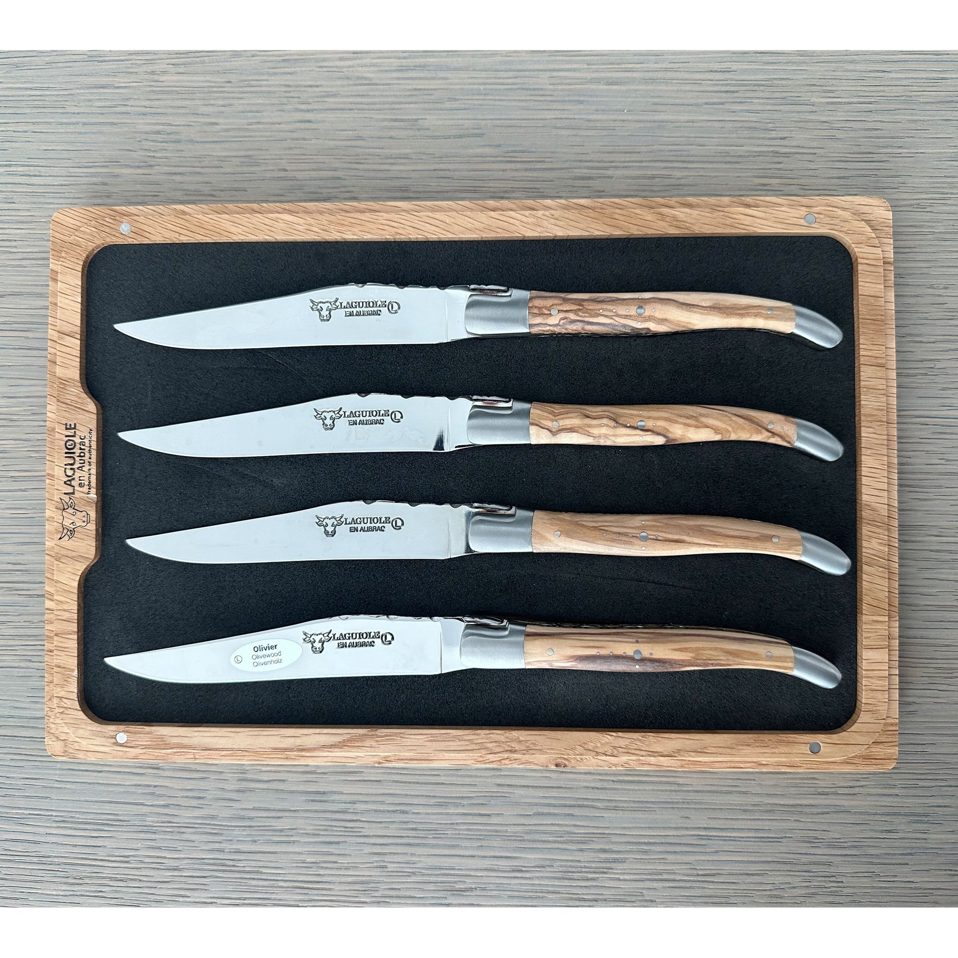 Laguiole en Aubrac Luxury Handcrafted Stainless Steel & Brass Double Plate 4-Piece Steak Knife Set with Olivewood Handles