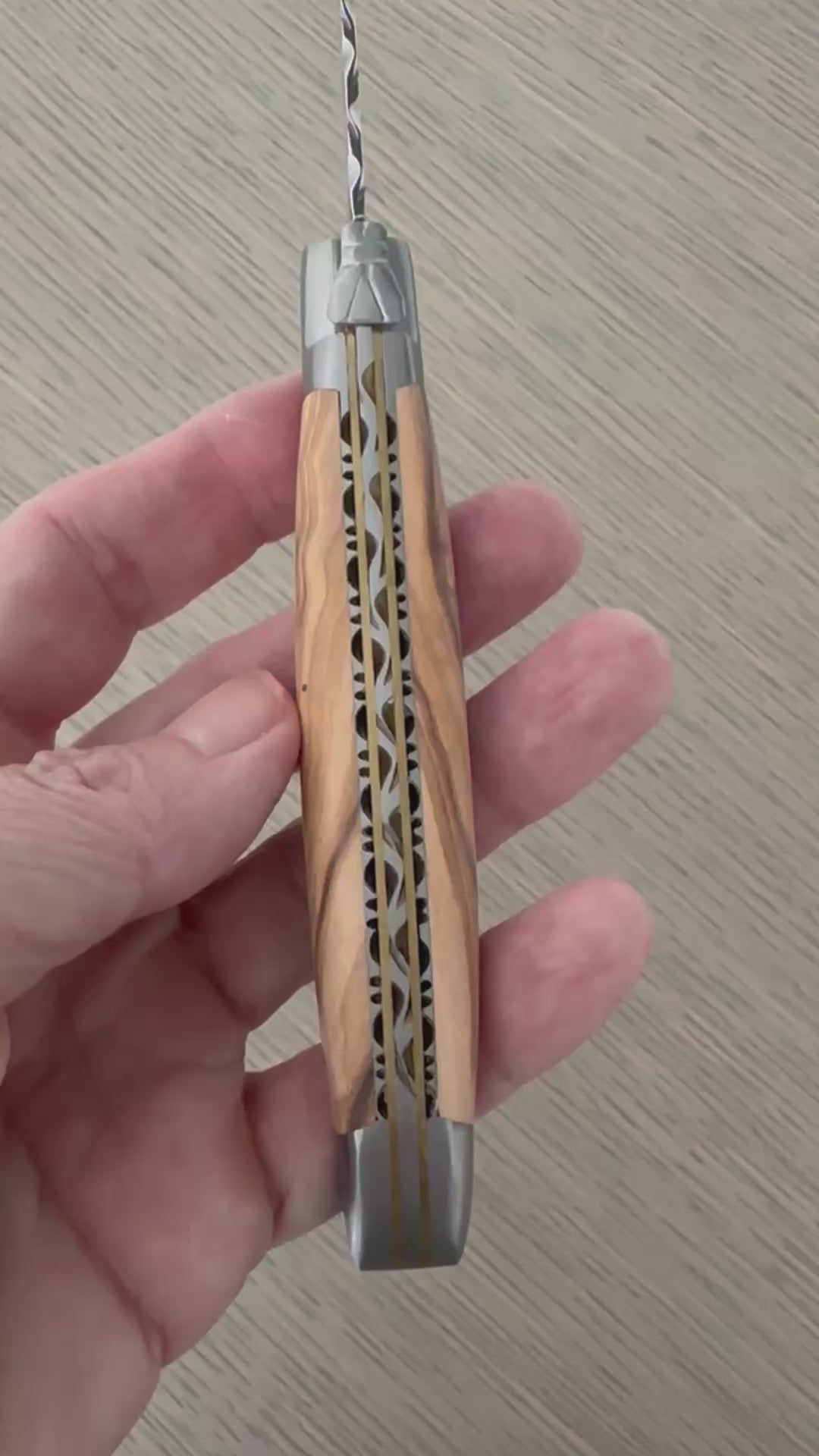 - Set of 4 heirloom-quality, handcrafted french steak knives with Olivewood handles, shiny stainless steel blades, and matte finish stainless steel bolsters.