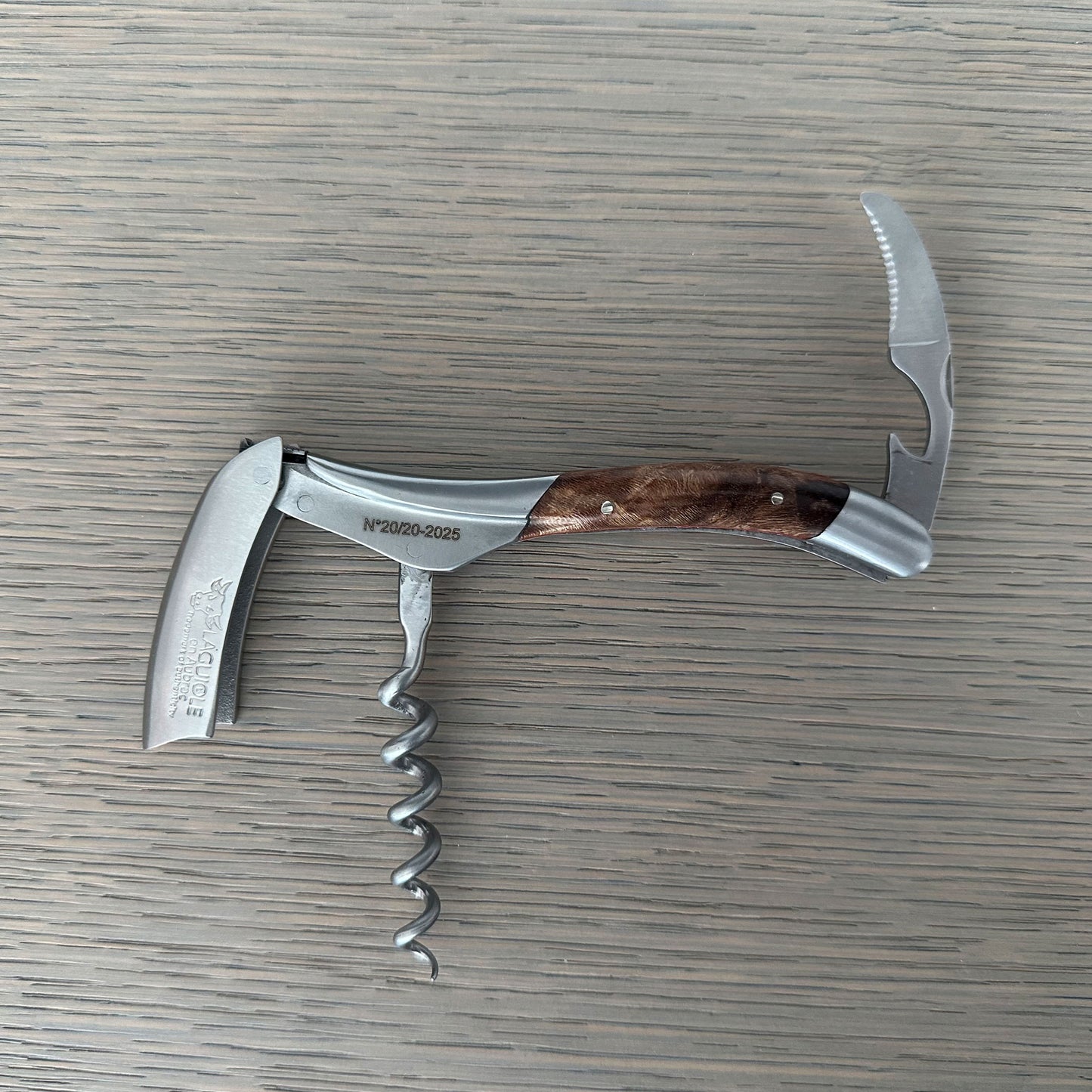 - Matte handle with exceptional crafting work along the top of the sommelier